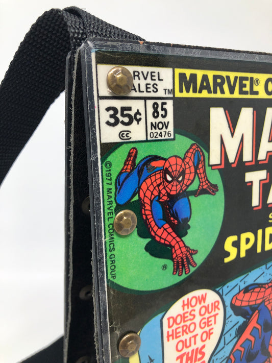 These 100% original and handcrafted purses are made using vintage comic books from various comic book publishers including Marvel and DC. The comic books are used to create fun purses featuring bright graphics, sturdy wood veneer construction and beautiful leather inserts. Wear a piece of comic history today!