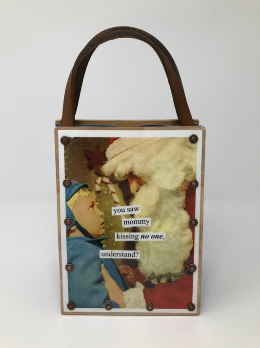 Vintage Modern Woman Handbag-Kissing Santa
