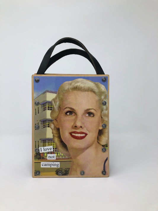 Vintage Modern Woman Handbag - I Love not Camping!